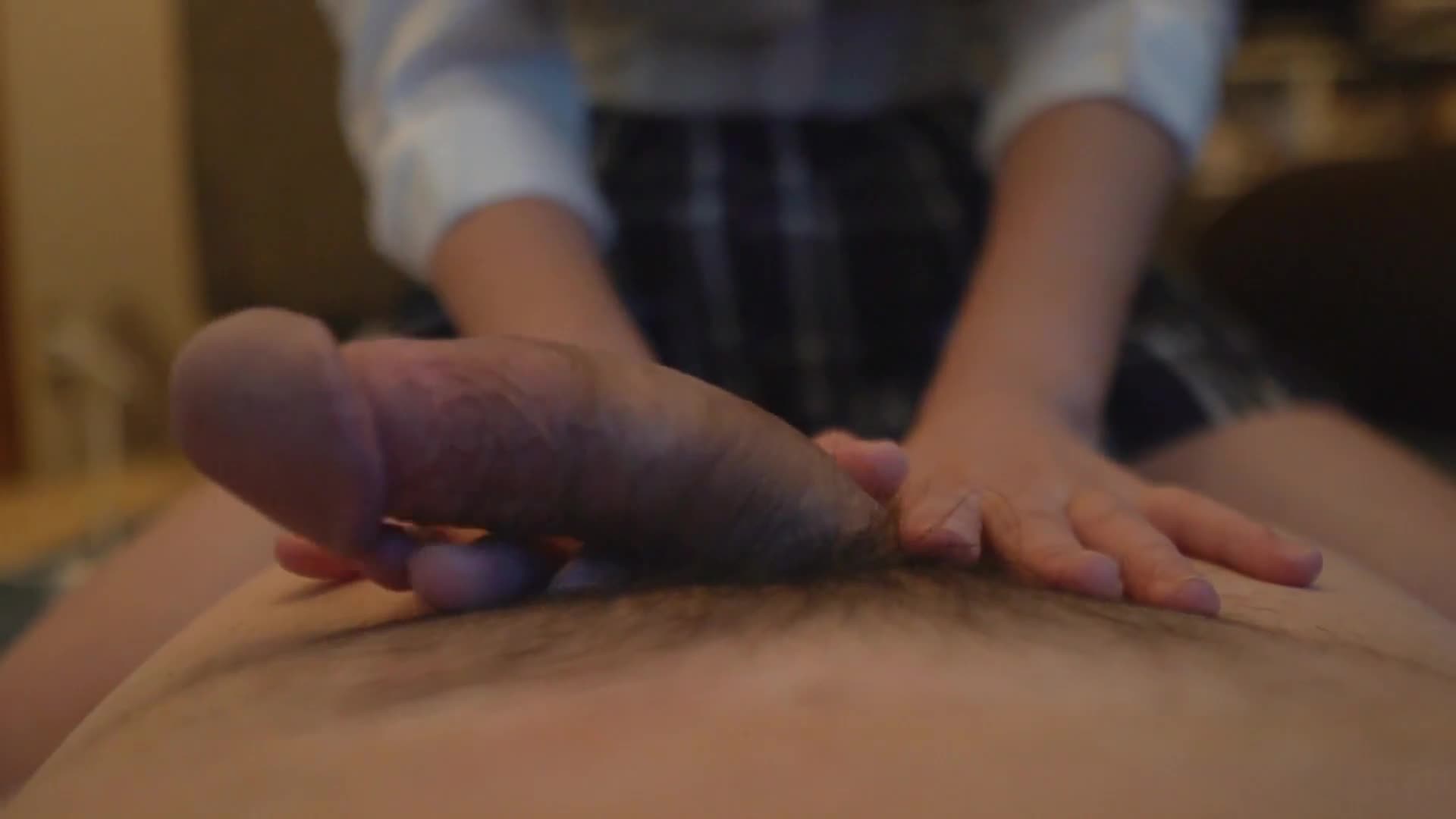 双手射穿美丽的黑发制服。 粘液最好的乳液打手枪